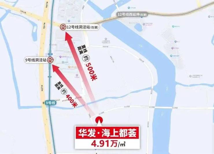 地铁12号线西延伸已经开工,预计2027年底通车,在松江境内从G60云廊沿沈砖公路东西穿过洞泾,设沪松公路、刘五公路站,在洞泾站与9号线交汇,未来通过12号线也能导入一定的人口;