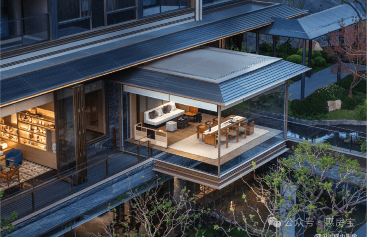 在建筑上,绿城·逸庐沿用庐系“现代形,东方意”的内核。小高层以金色线条勾勒挺拔轮廓,大面玻璃搭配轻盈檐角,既有东方风骨,又具摩登质感:叠墅区则强调“东方屋檐下的院落感”通透立面搭配简约线条让阳光与清风自由穿梭,勾勒出“飘逸东方之美”。