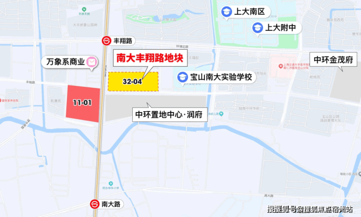 2024年10月25日,华润置地以底价约46.11亿拿下宝山区大场镇W12-1301单元32-04地块、宝山区大场镇W12-1301单元11-01地块,即宝山南大丰翔路TOD地块二期中环置地中心·望雲。