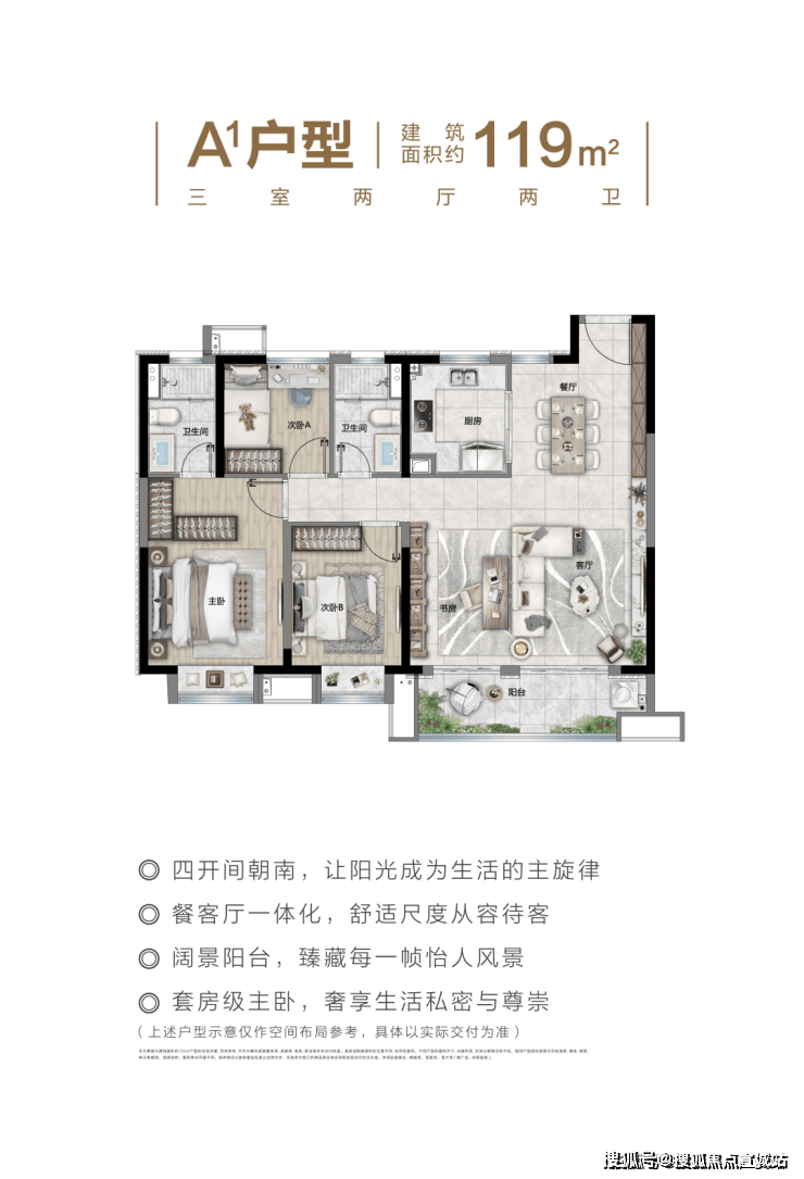 主力户型:建面约 75-123㎡的 2-4 房,具体有 75㎡两房、85㎡三房、95㎡三房、115㎡四房、123㎡四房等。