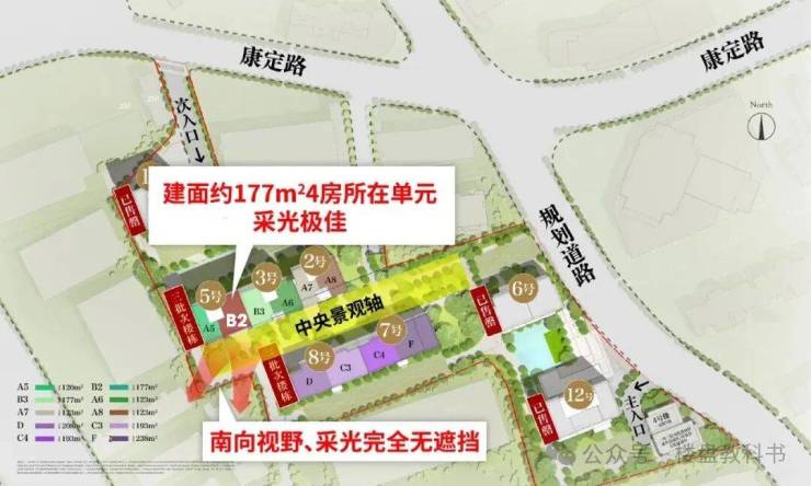 其次,本次推出的两栋楼都位于社区中央楼王位置。