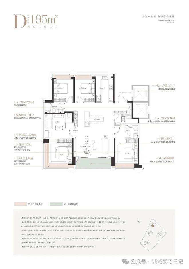 建面约195㎡4房 总价约2700-3300万