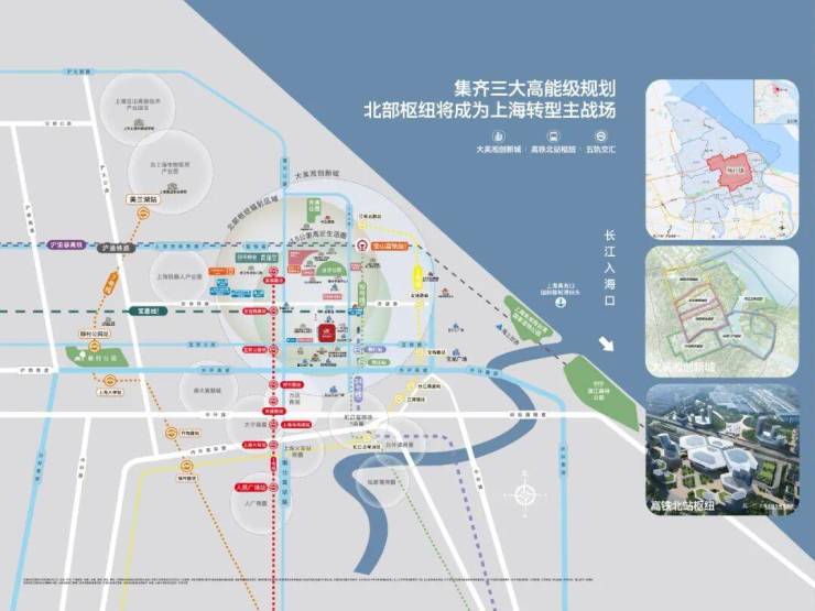 宝山站(在建)总开发规模约50万㎡,沪渝蓉铁路、沪苏通铁路二期及19号线(在建)等在此处汇集。(信息来源:上海发布公众号)