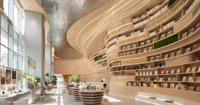 特别打造的"时空图书馆"通过智慧阶梯与多功能复合空间,重新定义了知识交互场景。从理念到落地的精细化协同、从概念萌芽到实景呈现,始终以“自然载体”为核心理念,全程深度参与设计施工品质管控。