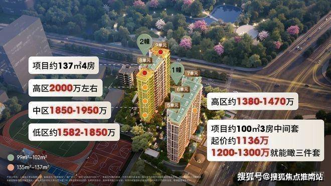 ①、项目约100㎡3房中间套,起价约1136万,1200-1300万就能瞰三件套,高区约1380-1470万;边套双270°飘窗+景观,定价适当贵一点。
