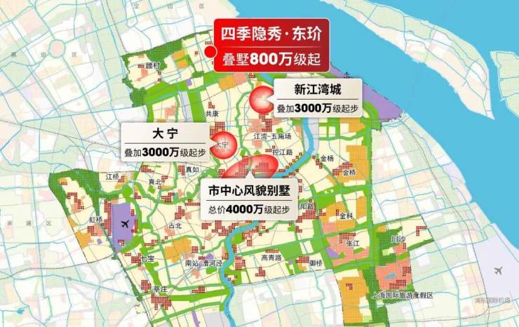 大宁、新江湾城等叠加都在3000万起步,市中心风貌别墅动辄4000万起步!