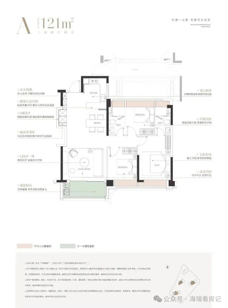 建面约121㎡3房: