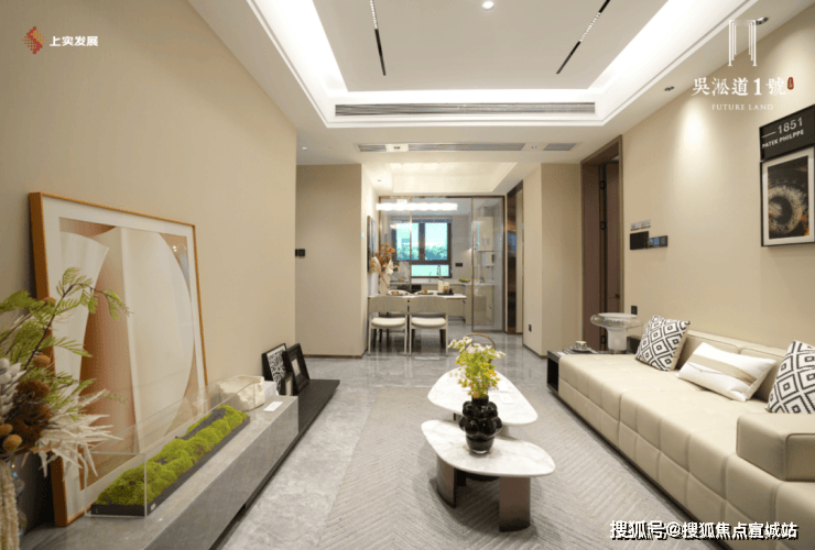另外,市场上常见单入户门厅,而吴淞道1號采用地上地下双精装入户门厅,质感岩板一体铺就。