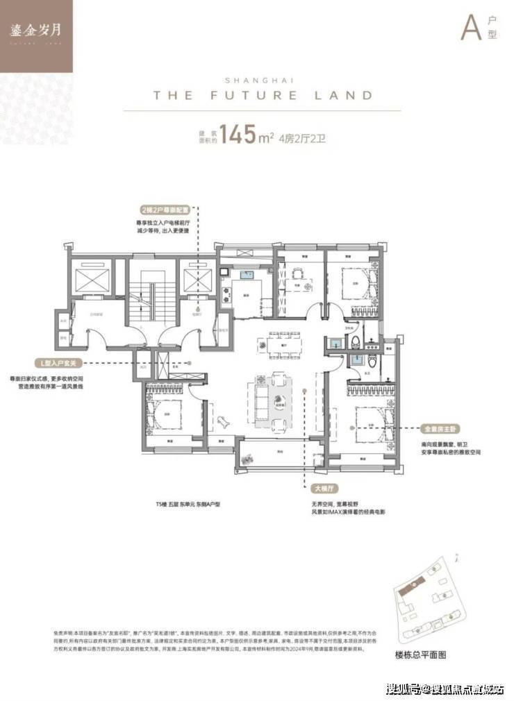 3、建面约145㎡4房:奢阔横厅,定制多元生活场景