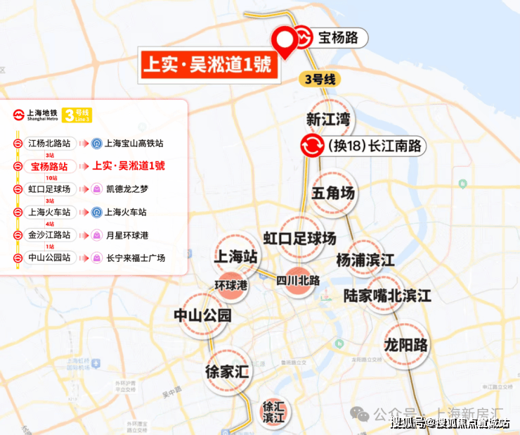 3号线通达虹口足球场、中山公园、徐家汇等多个热门商圈。