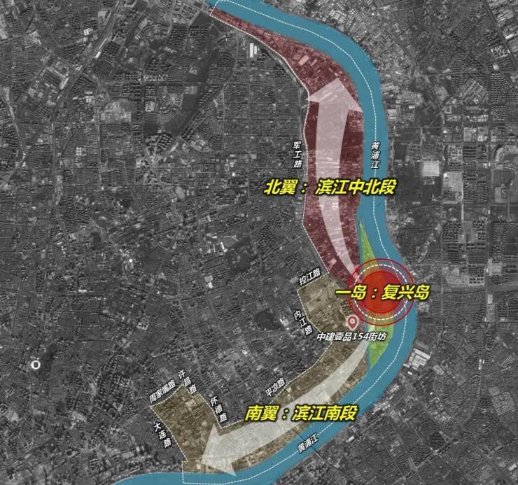 对于中建壹品154街坊来说,其还有一个很独特的“世外桃源”——复兴岛,作为黄浦江上唯一的内陆岛屿,未来极具充满想象,而占地15.6平方公里的杨浦滨江区域也将以复兴岛为核心,构建起“一岛两翼”的空间格局。