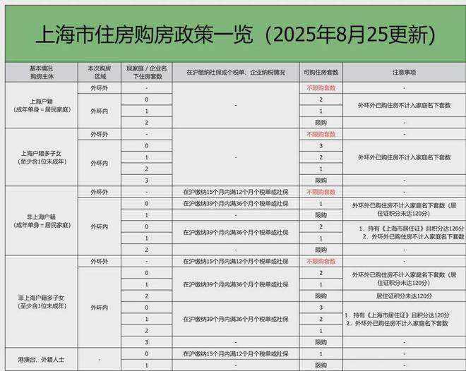 一、上海2025年8月最新限购政策汇总