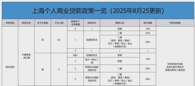 二、上海2025年8月最新购房商贷/公积金贷款政策