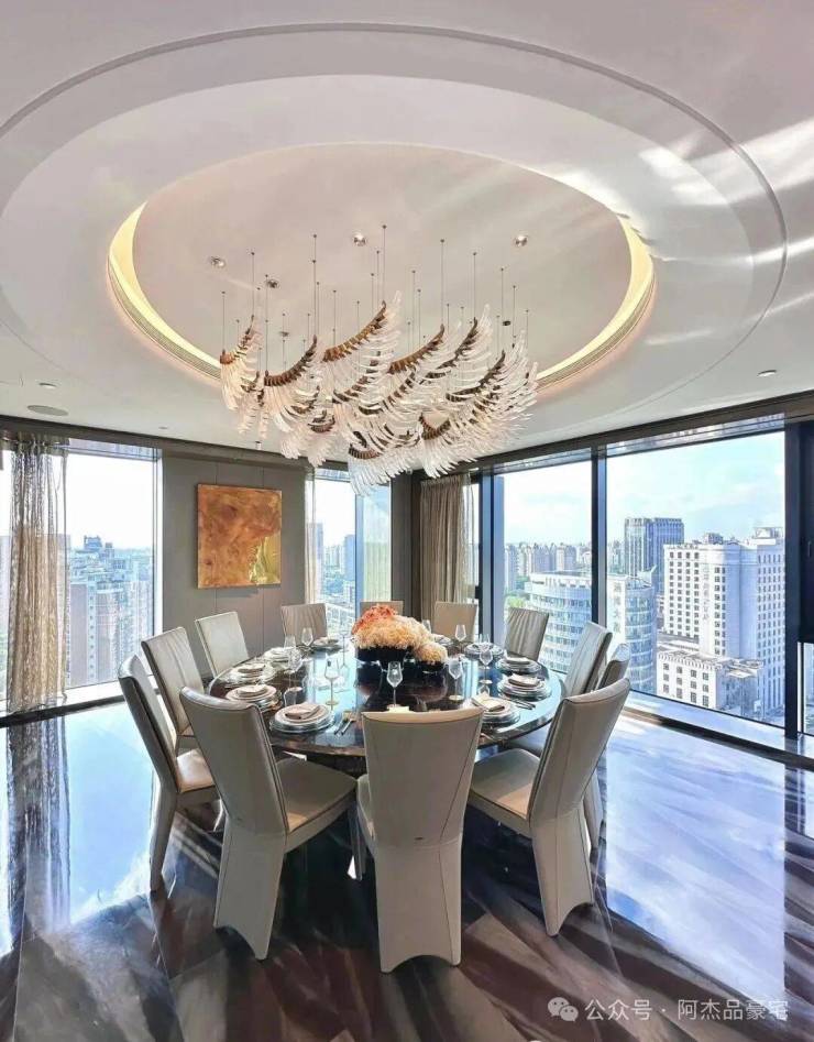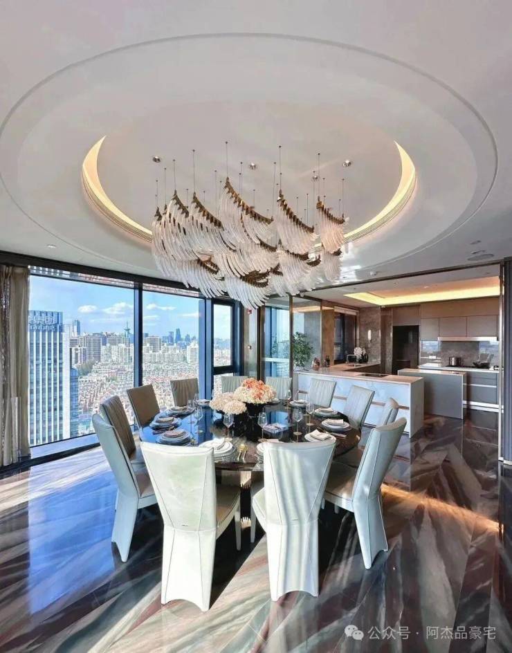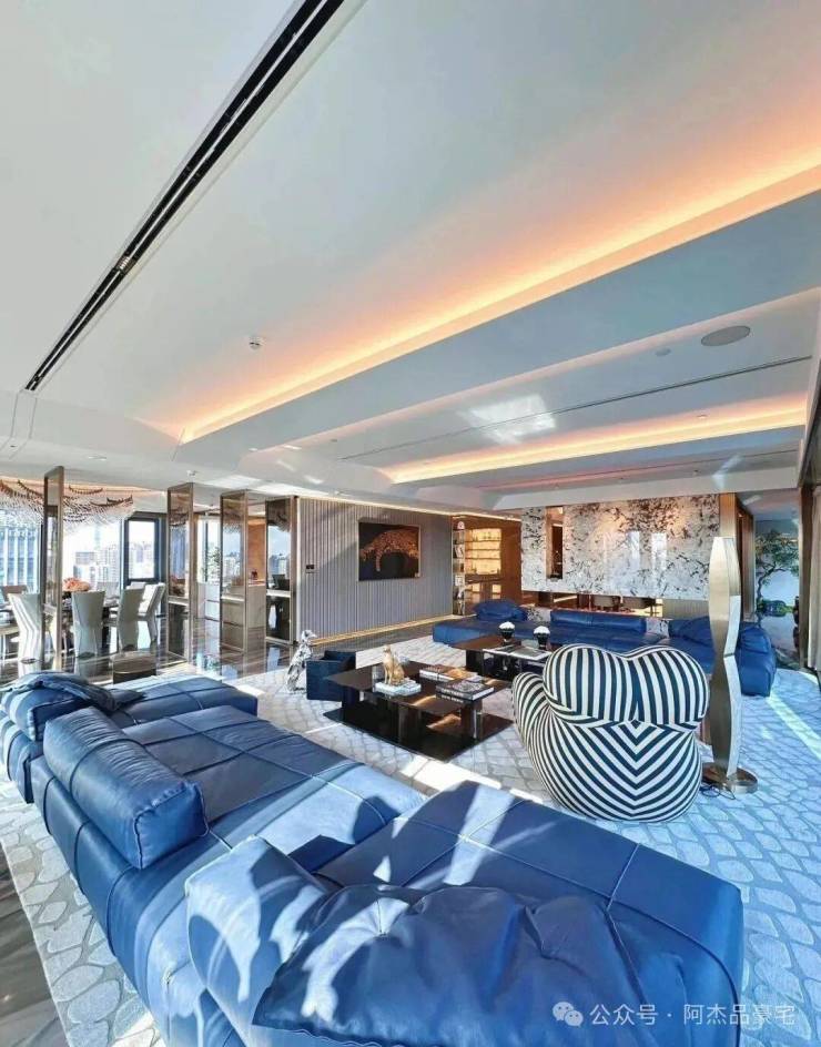 装修上,将时尚与奢华巧妙融入每个角落,所有的窗帘、移门、提升窗、灯光、空调、新风、地暖都可以通过手机远程控制。