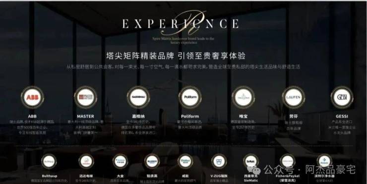 豪装交付,装修标准约1.5万元/㎡,汇聚嘉格纳厨电、Master装甲门、Bulthaup或Siematic橱柜、Poliform或LEMA衣帽间、大金VPV定制空调新风系统、威能水循环地暖、滨特尔三层净水系统等国际一线品牌;智能家居系统,所有窗帘、移门、提升窗、灯光、空调、新风、地暖均可通过手机远程控制
