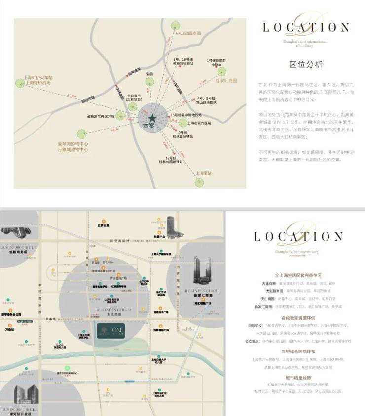 项目地处闵行长宁交界的古北板块,项目依托虹桥交通枢纽和长宁徐汇商圈,交通便利配套成熟,是上海第一个大型高标准的国际豪宅社区。