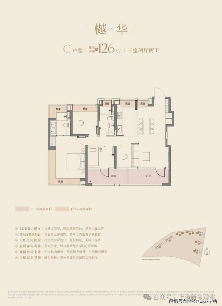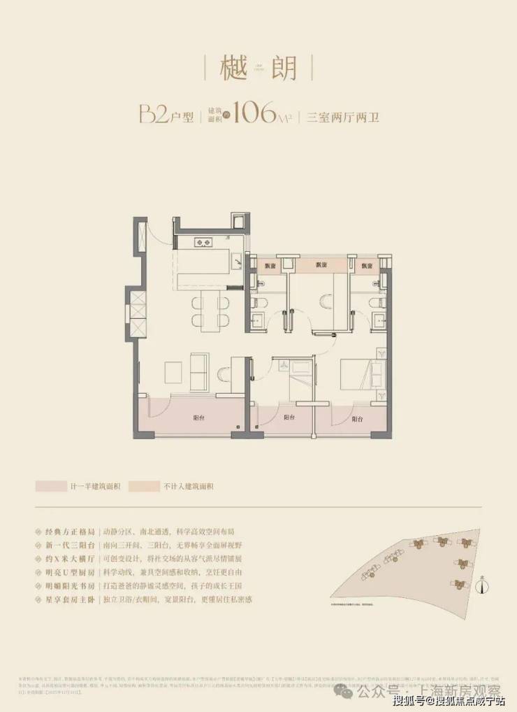 建筑面积约106㎡户型,更是以宽尺大横厅和270°的转角飘窗赚足了眼球,阳光与清风自由流淌,居住舒适度全面提升。LDKB一体化设计,在餐厨区布局万能中岛台,打破了厨房与餐厅的界限,延伸烹饪空间,增加收纳空间,更将社交功能融入其中,重塑中国人的情感场域。
