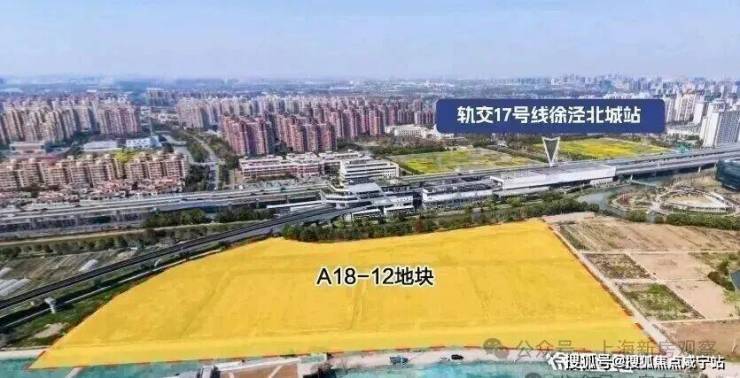 地块北侧即为17号线徐泾北城站,直线距万科天空之城商业约1.2公里。地块东至规划绿地,南至徐耀路,西至规划绿地,北至规划绿地,为普通商品房,出让面积4.94公顷,容积率2.3。