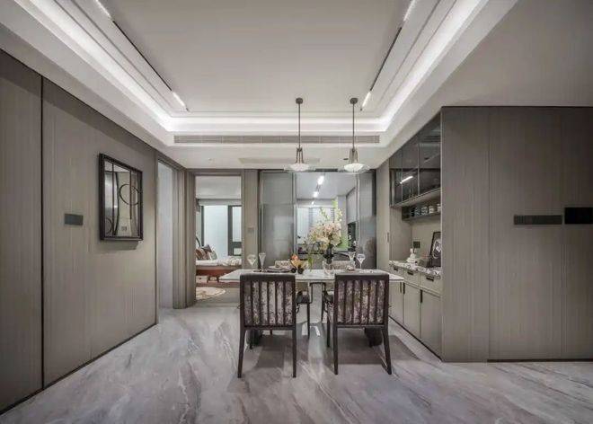 收纳系统藏着巧思:玄关至卧室的嵌入式柜体总容量达 8㎡,堪比独立储物间;厨房预留双开门冰箱位与管线机插座,细节里满是对现代家庭的体贴。更令人安心的是健康配置:低甲醛板材、无毒涂料守护室内环境,电梯轿厢的紫外线消毒灯与入户大堂的智能快递柜,让日常充满安全感。