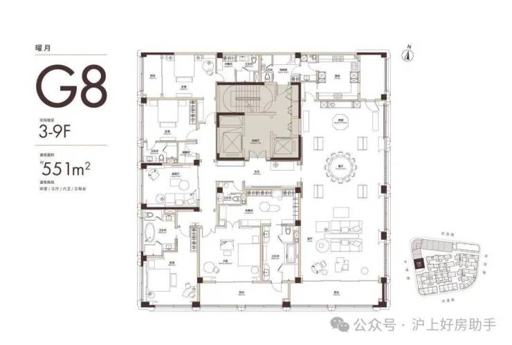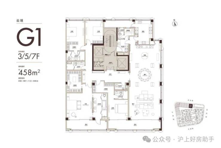 建面408㎡大平层 南向面宽26.8米,得房率89%