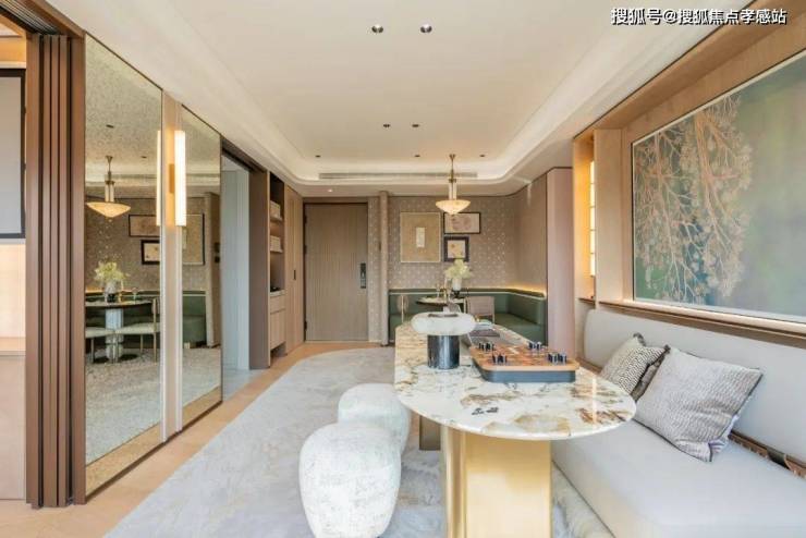公区设计方面,该户型实际是南北动静分区的设计,南面主次卧休息区域,北面客厅联通餐厨区和水吧台,格局相当方正,避免了面积浪费,也让视野几无遮挡,进门就能感受到大宅气度。☮🔥保利光合上城售楼处电话:400-8787-740👈🔥