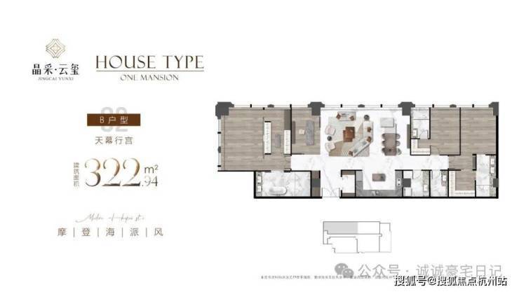 在售户型面积:主力户型为建面约 225㎡四房两厅三卫、280㎡五房两厅四卫、340㎡六房两厅五卫的奢阔大平层。