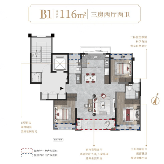 户型设计方面,建发联发青云上同样表现出色。建面约95㎡的三房户型,三开间朝南,总面宽达9.6米,采光充足;主卧套房设计,配备独立卫浴,私密性强。建面约116㎡的轻奢户型,全屋5个飘窗+南向观景阳台,空间利用率高。项目采用精装修交付标准,配置方太、老板等一线品牌厨电,科勒、摩恩等国际品牌卫浴,还配备了四合一智能门锁、中央空调、地暖、新风系统等智能家居设备,确保居住的品质与安全。