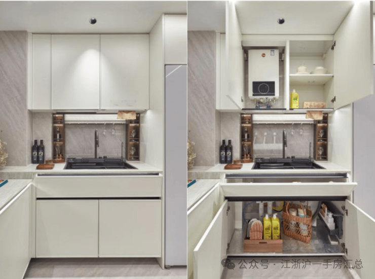 从5大收纳区的镂空玄关柜,到分类更细致的卫浴空间,再到厨房的5大分区,以及更惊喜的餐边柜,划分6大功能区,全屋收纳量飙升!