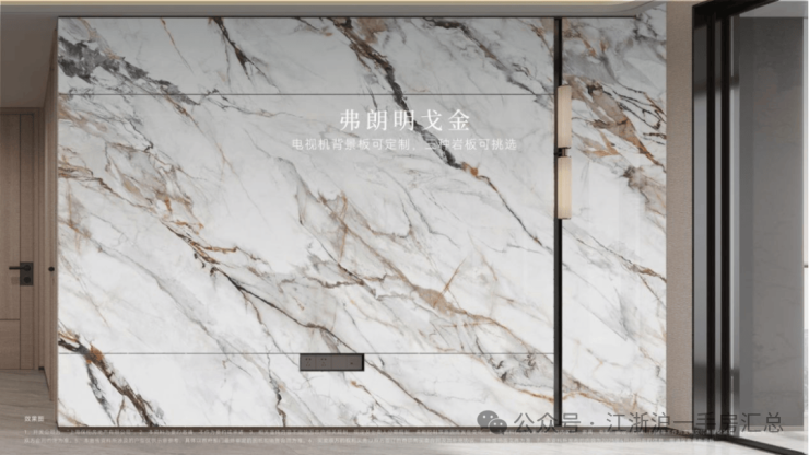 🔥🔥保利天奕官方售楼处电话:400-1010-064🔥🔥充分考虑业主的个性化需求,在电视背景板提供了新潘多拉、云中翡翠、弗朗明戈金三种结晶釉面岩板选择,成本更高,施工难度也更大。🔥🔥保利天奕官方售楼处电话:400-1010-064🔥🔥