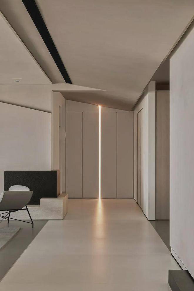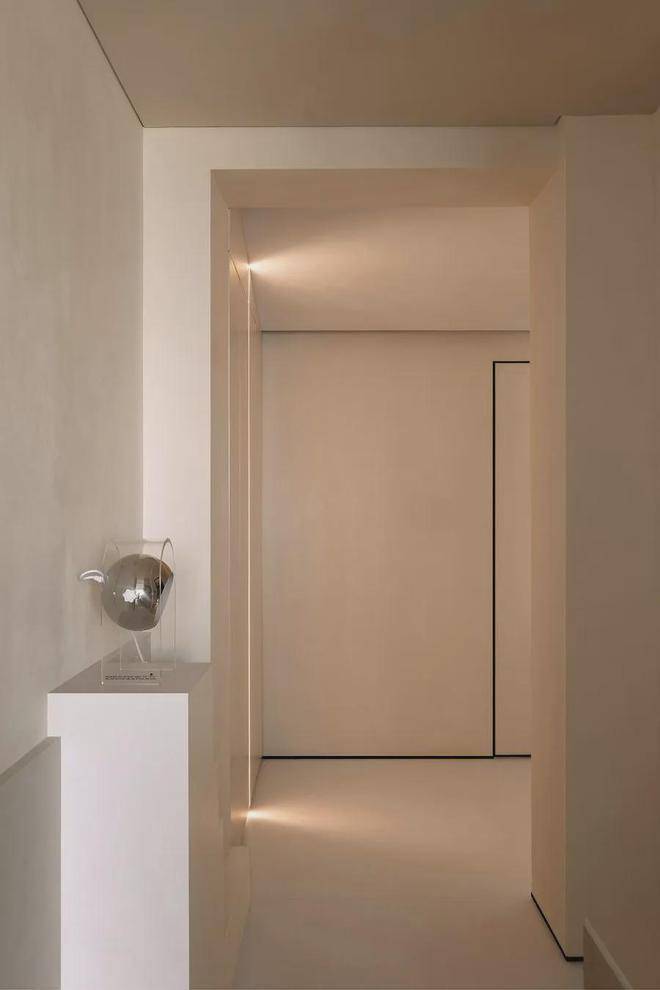 柔光迎着门扇的开启渐渐慢反射而来,不经意的光线让结构产生了阴影,层次感油然而生,让细润的圆与方正的棱角结构融合在了一起。