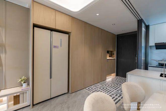 首先,S墙的设计,为了让小户型也能容纳双开门的大冰箱。