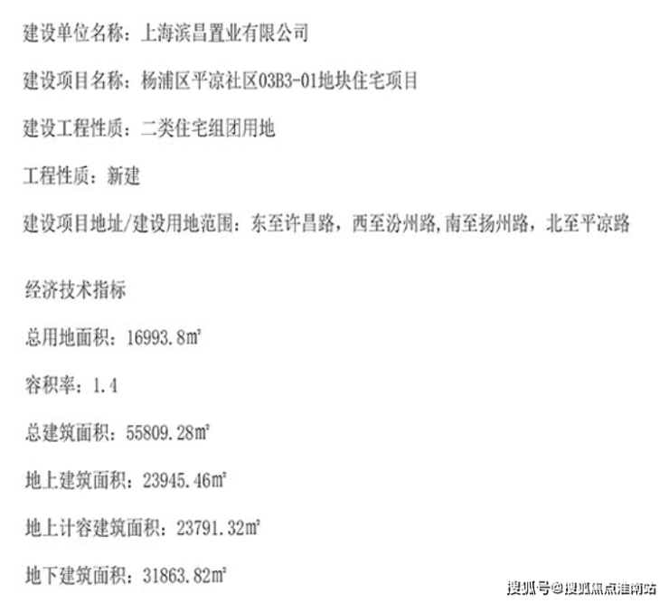 该地块坐落于杨浦区平凉社区,四至范围:地块东至许昌路,西至汾州路,南至扬州路,北至平凉路,总用地面积16993.8平,容积率1.4,地上建筑面积23945.46平,为二类住宅组团用地。