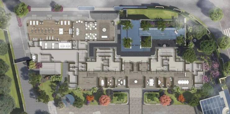 15.4米南向光域,270°环景阳台接引天光,将约5000m²城市公园(规划)与内园双景框入巨幕,展开顶豪视野。