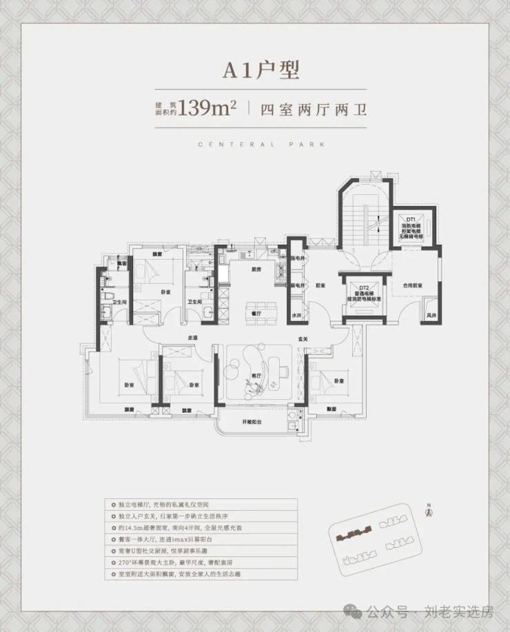 建面约139㎡4房户型,套数不多,但产品力绝对惊艳。