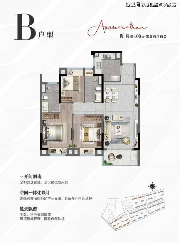 户型解析:「上实·听海」售楼处电话:400-885-5420✨✨三开间朝南,全明通透宽域,全天候优质采光;空间一体化设计,消除客餐厨阳台的空间界限,延展多元生活逸趣;揽景飘窗、主卧、次卧皆配飘窗,延拓房间视野,静聆自然韵律。
