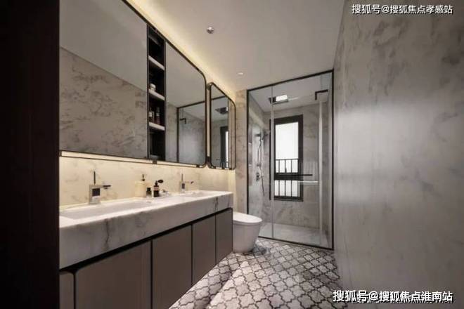 细节方面,主卧套房设计,保证了私密性。主卫的双台盆设计更是相当贴心。能实现男女主人共同洗漱的温馨场景。