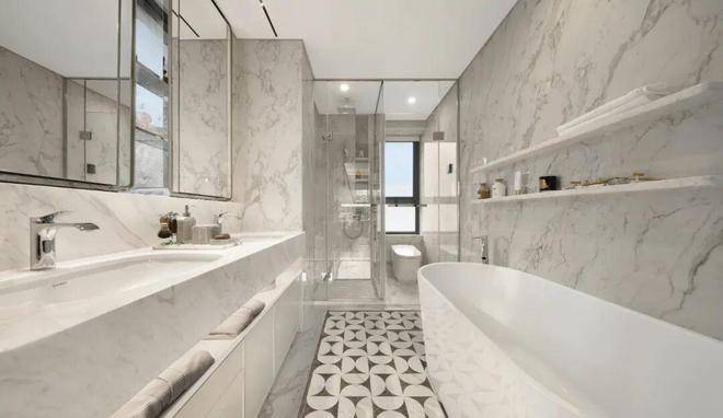 此外,室内还大量运用雅士白大理石、大花白岩板、皇家孔雀岩板、水纹夹丝玻璃、仿洞石岩板、卡拉卡塔白岩板、灰色皮革等定制材质,以华润置地独有的“五奢体系”,彰显着对高品质生活的极致追求。