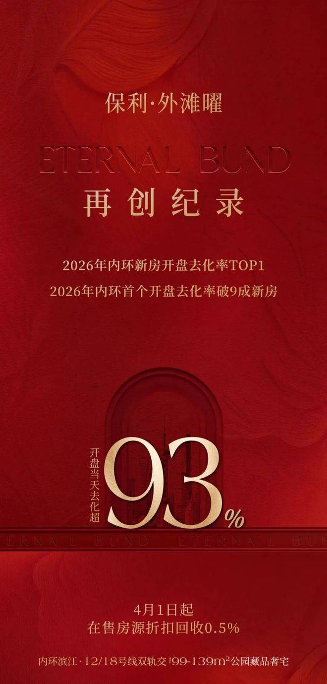 3月27日正式开盘,二批次去化超93%,成为内环首个开盘去化率破9成的新房,再创纪录,问鼎2026年内环新房开盘去化率TOP1,成为内环滨江红盘领跑者。据最新消息,项目4月1日以后在售房源优惠回收0.5%