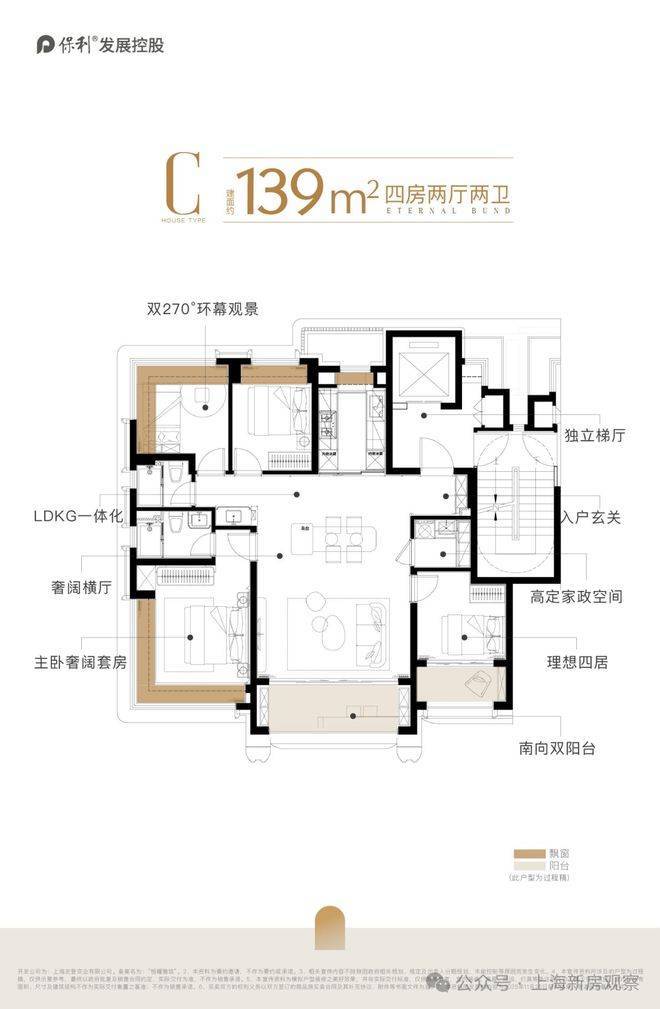 建面约139㎡天幕四房!