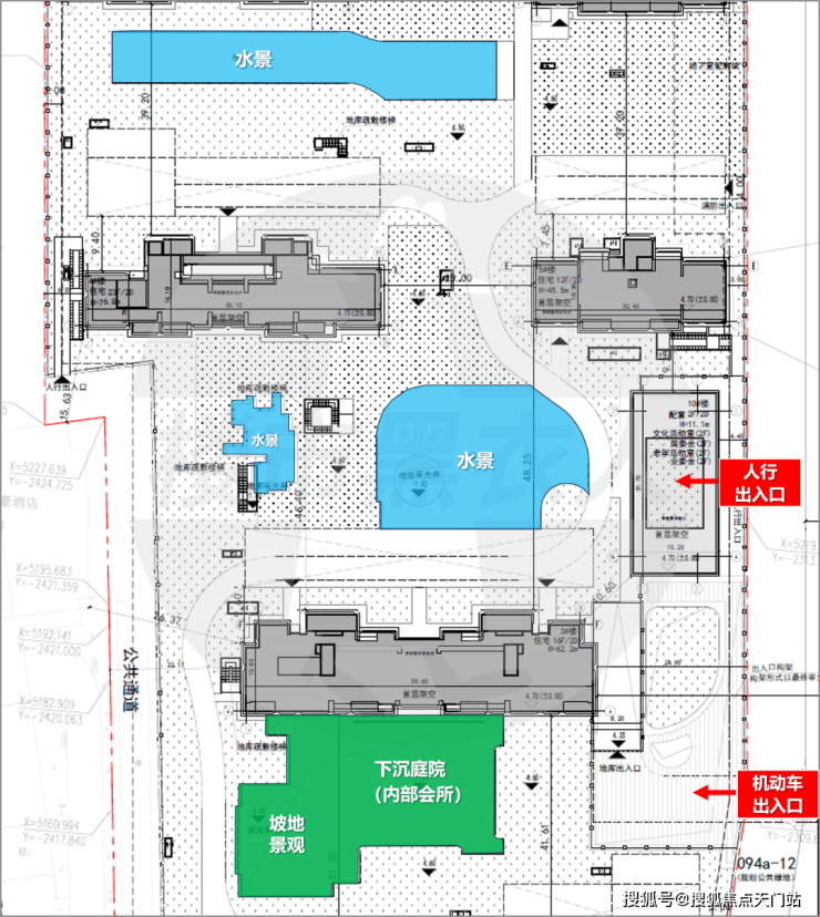 从规划图来看,社区内部广泛运用水景:共有2处大型集中水景+1处宅间水景,周边还有下沉庭院+坡地景观,大概率此处未来社区会所的位置。值得一提的是,项目的楼间距全部在35米以上,最大楼间距达到了约51.2米。