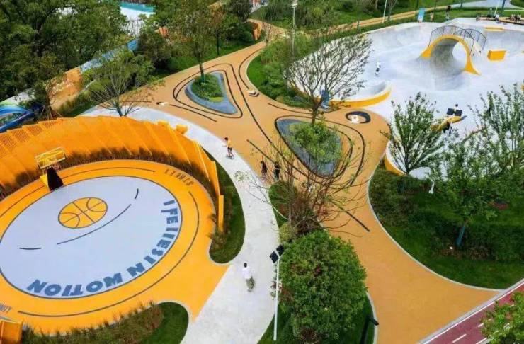 1300平方米的潮流滑板公园,是继新江湾城SMP滑板公园后上海第二座位于大型住宅旁、滨水绿地公园中的专业级潮流滑板基地,可满足不同级别玩家需求,内置BMX(Bicycle Motocross,自行车越野)及陆冲赛道、街式滑板、自由碗池、趣味篮球等丰富功能,打造专属年轻人的极限运动潮流基地。