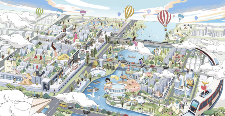 记者从代建方了解到,规划中的保利光合公园包含约14万平方米的潮玩艺术区、3万平方米的活力运动区和约6万平方米的河道。未来,市民朋友可以在上海轨交15号线元江路TOD(Transit-Oriented-Development,指“以公共交通为导向”的开发模式),体验到一处总面积超过20万平方米的公园绿地。