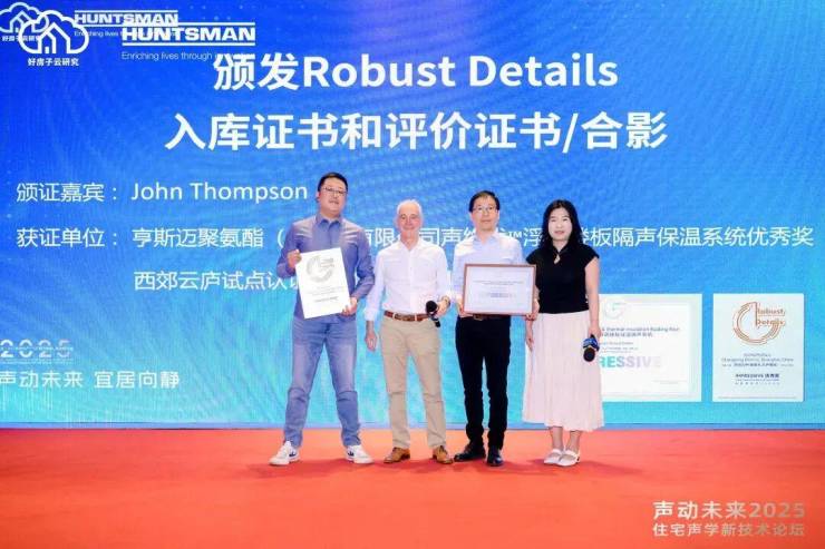 交付是最后环节,也是品质的托底。西郊云庐的装标首先是品牌的遴选极其严苛,在隔音系统领先国际前沿,携手亨斯迈,成为上海首批使用亨斯迈(Huntsman)微孔阻尼弹性体楼板保温隔声系统的项目,其建筑降噪隔音远远优于中国《住宅项目规范》对楼板撞击声≤65dB的强制要求,且通过英国 Robust Details国际权威认证,是2025年5月份国内首批通过该认证的建筑声学隔声体系(数据来源于中国化工信息杂志)。