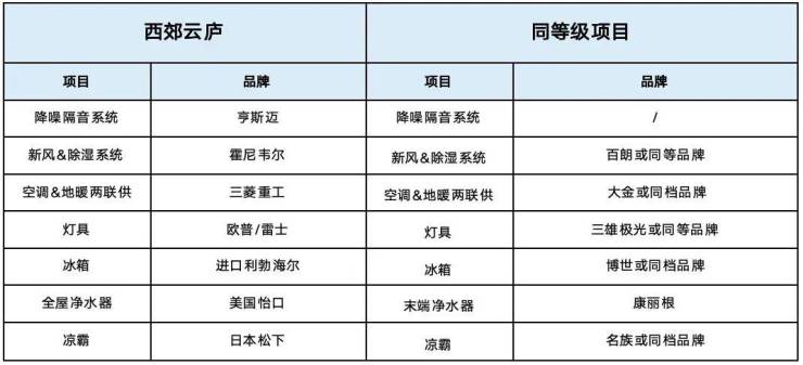 *以下是长宁区域西郊云庐与某某项目的交付对比