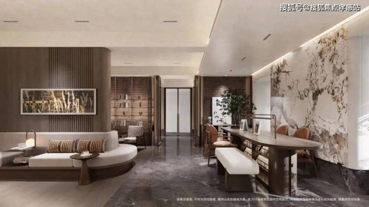 招商时代潮派售楼部电话:400-8080-420☎地上地下双入户大堂,地下车库电梯直达,尽享尊崇礼遇;一层高定入户门厅,弧形悬浮顶棚,时刻彰显优雅摩登。