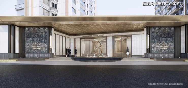 招商时代潮派售楼部电话:400-8080-420☎以酒店的礼序、营制归家的仪式:部分入口酒店式环岛落客区的设计,搭配水景营造,拉满归家的仪式感。