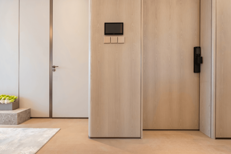 开启入户门,室内空间色调又与电梯厅高度统一,观感一气呵成。