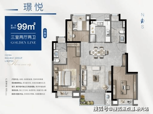 主力户型 2:99㎡ 3 房 2 厅 2 卫(洋房)