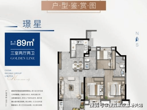 主力户型 1:89㎡ 3 房 2 厅 2 卫