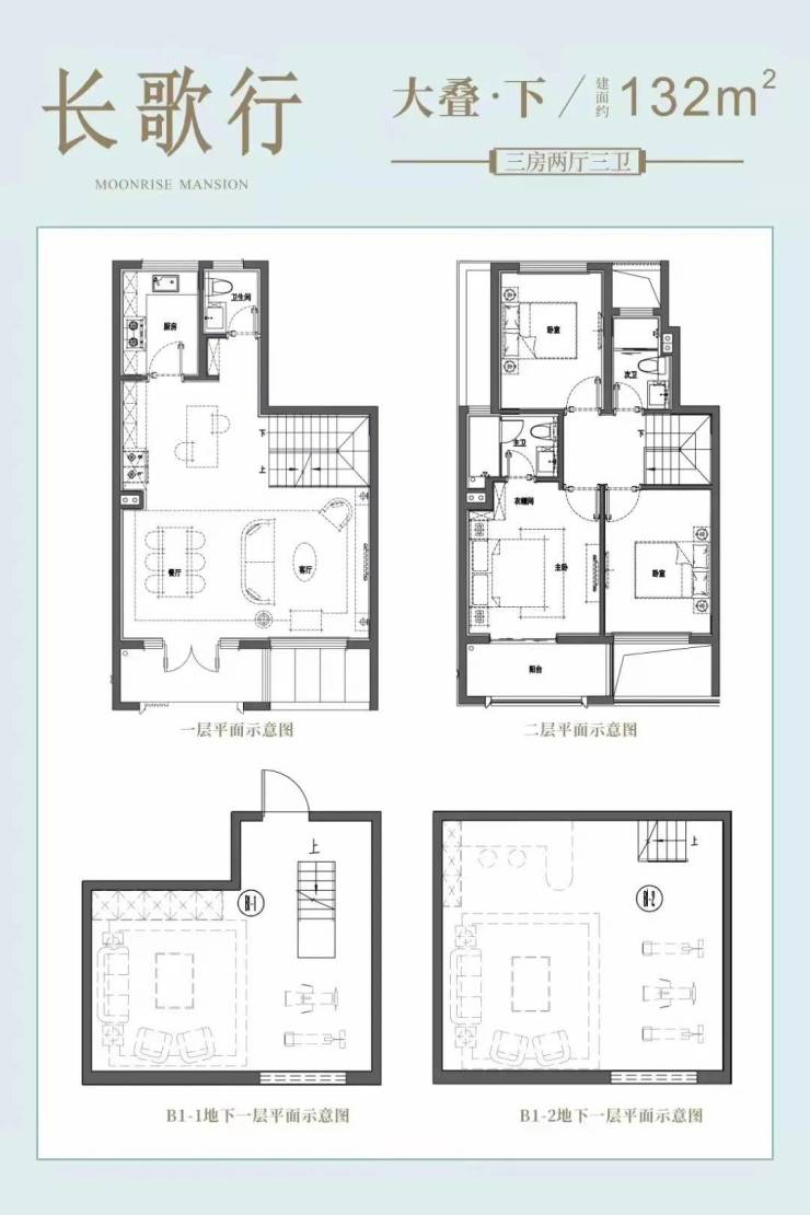 合院(毛坯):附带40-100㎡花园&地下室(层高5.3m),三楼有近15㎡露台。